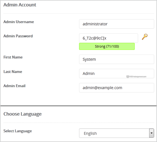 • Admin Username: Your new Dotclear username (for security reason do not use the "Administrator" or the "Admin" username.)